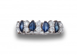 SORTIJA MEDIA ALIANZA DE DIAMANTES Y ZAFIROS, EN ORO BLANCO