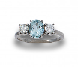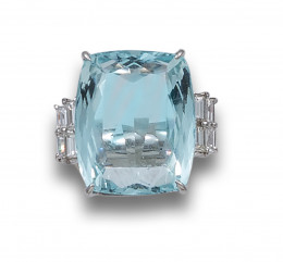 SORTIJA DE AGUAMARINA, DIAMANTES Y PLATINO