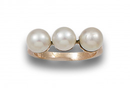 SORTIJA TRESILLO ANTIGUO DE PERLITAS Y ORO