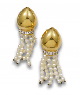 PENDIENTES EN ORO, DIAMANTES Y PERLAS