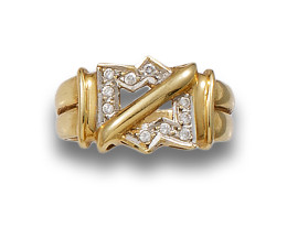 SORTIJA AÑOS 50 EN ORO AMARILLO CON UN TOTAL DE 1.50 CT.
