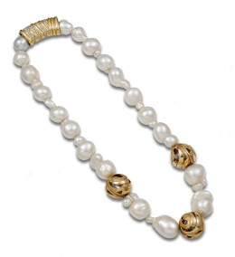 COLLAR DE PERLAS AUSTRALIANAS BARROCAS, DETALLES EN ORO AMARILLO CON DIAMANTES