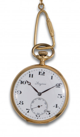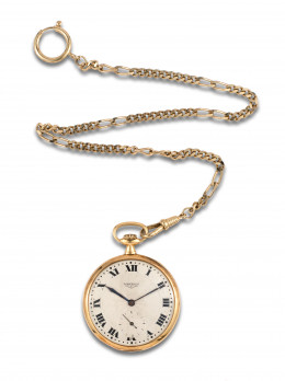 RELOJ DE BOLSILLO LEPINE LONGINES EN ORO AMARILLO CON LEONTINA