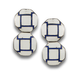 GEMELOS ANTIGUOS ART DÉCO EN PLATA Y ESMALTE