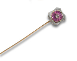 ALFILER DE ROSA DE FRANCIA Y DIAMANTE, EN ORO AMARILLO