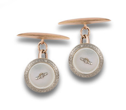 GEMELOS ANTIGUOS DE NÁCAR, ORO Y PLATINO