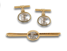 PASADOR DE CORBATA Y GEMELOS EN ORO Y PLATINO