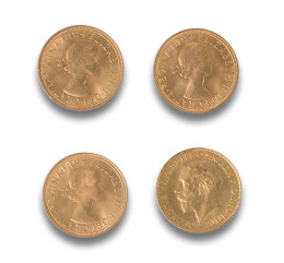 CUATRO SOBERANOS BRITÁNICOS EN ORO DE 1927, 1958 Y 1965