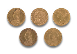 CUATRO MONEDAS EN ORO DE EEUU Y GRAN BRETAÑA