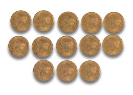 ARRAS FORMADAS POR 13 MONEDAS DE 2,5 PESOS MEXICANOS DE ORO