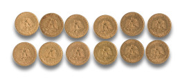 12 MONEDAS DE ORO DE 2 PESOS MEXICANOS