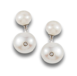 GEMELOS DOBLES DE PERLAS Y DIAMANTES, EN ORO BLANCO