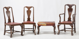 Dos sillas, un sillón y un escabel estilo Jorge II, Ingalterra, S. XX