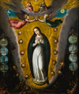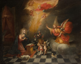 "Anunciación en guirnalda floral" / "Adoración de los pastores en guirnalda floral"