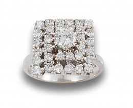 SORTIJA CUADRADA DE ORO BLANCO Y DIAMANTES