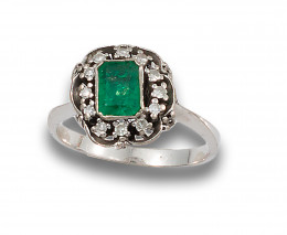 SORTIJA ROSETÓN DE ESMERALDA, DIAMANTES Y ORO BLANCO