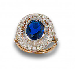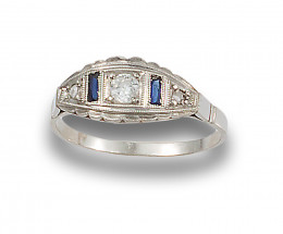 SORTIJA ART DECÓ DE DIAMANTES,ZAFIROS Y PLATINO