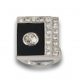SORTIJA ART DECÓ DE DIAMANTES, ÓNIX Y PLATINO