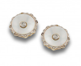 PENDIENTES ART DECÓ, DE DIAMANTES, NÁCAR, ORO AMARILLO Y PLATINO
