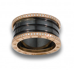 SORTIJA BULGARI B.ZERO1 DE ORO ROSA, CERÁMICA Y DIAMANTES