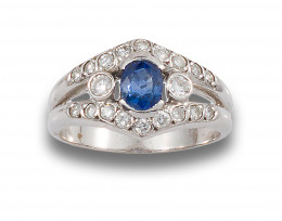 SORTIJA DE ZAFIRO OVAL, DIAMANTES Y ORO BLANCO
