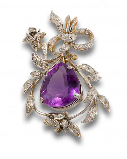 COLGANTE DE AMATISTA, DIAMANTES EN ORO AMARILLO Y BLANCO