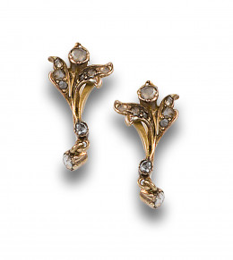 PENDIENTES COLGANTES BELLE EPOQUE DE DIAMANTES Y ORO AMARILLO