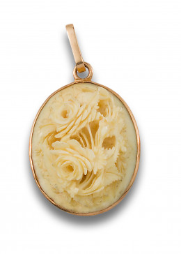 COLGANTE DE FLORES TALLADAS EN HUESO, EN ORO AMARILLO