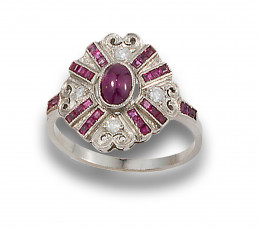 SORTIJA ESTILO ART DECÓ RUBÍES Y DIAMANTES