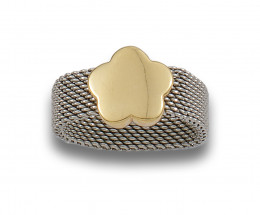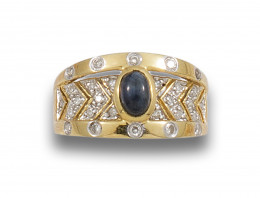 SORTIJA EN ORO BICOLOR CON CABUJÓN DE ZAFIRO Y DIAMANTES