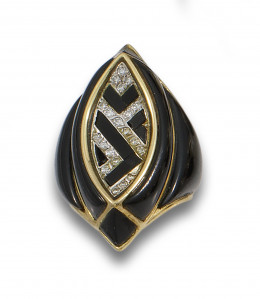 SORTIJA FIRMADA GREGORY, AÑOS 70, DE ORO, DIAMANTES Y ÓNIX