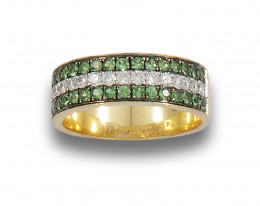 SORTIJA MEDIA ALIANZA DE TSAVORITAS Y DIAMANTES, EN ORO AMARILLO