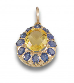 COLGANTE EN ORO CON CITRINO Y ZAFIRO