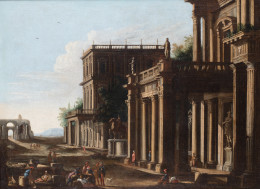 "Palacios jónicos con una escultura ecuestre sobre un pedestal", c. 1670-1680