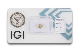 DIAMANTE, TALLA BRILLANTE, DE 0.53 CT. NATURAL FANCY INTENSE YELLOW