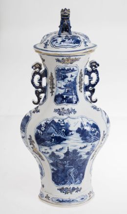 Jarrón chino con tapa, en porcelana china Quianlong finales S.XVIII