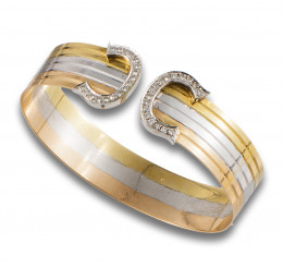 PULSERA TORQUE DE ORO TRICOLOR Y DIAMANTES
