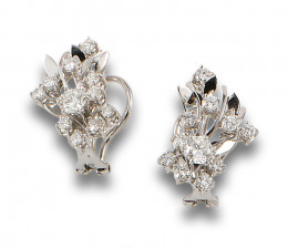 PENDIENTES FLORES DE DIAMANTES Y ORO BLANCO