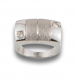 SORTIJA CUADRADA DE DIAMANTES Y ORO BLANCO