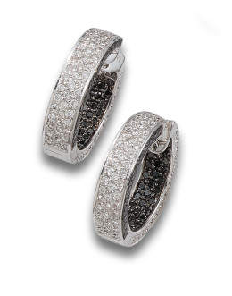 PENDIENTES CRIOLLAS IN & OUT FIRMADAS VASARI DE DIAMANTES INCOLOROS Y NEGROS, EN ORO BLANCO
