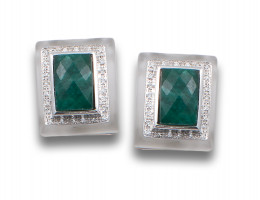 PENDIENTES DE MALAQUITA, CRISTAL DE ROCA, DIAMANTES Y ORO BLANCO