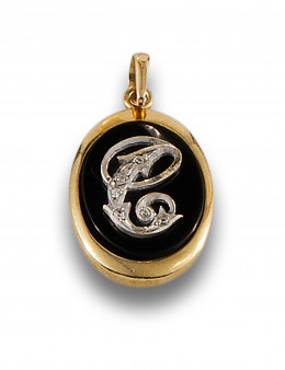 COLGANTE DE ORO AMARILLO, DIAMANTES Y ÓNIX