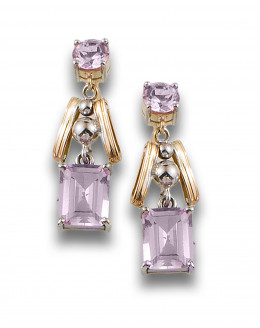 PENDIENTES LARGOS , ESTILO ANTIGUO, DE ROSAS DE FRANCIA Y ORO