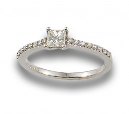 SORTIJA SOLITARIO DE DIAMANTE, TALLA PRINCESA DE 0.40 CT. APROX. EN ORO BLANCO