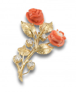 BROCHE DE CORAL, DIAMANTES Y ORO AMARILLO
