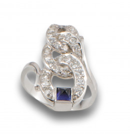 SORTIJA DE DIAMANTES, ZAFIRO SINTÉTICO Y ORO BLANCO
