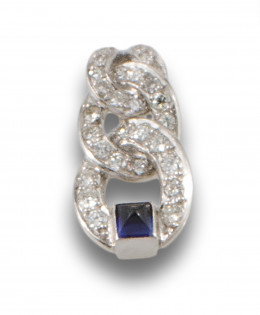 COLGANTE DE ESLABONES ENTRELAZADOS DE DIAMANTES, ZAFIROS SINTÉTICOS Y ORO BLANCO