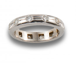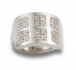 ANCHA SORTIJA DAMERO DE DIAMANTES Y ORO BLANCO