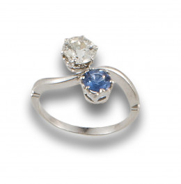 SORTIJA TÚ Y YO DE DIAMANTE Y ZAFIRO, EN ORO BLANCO