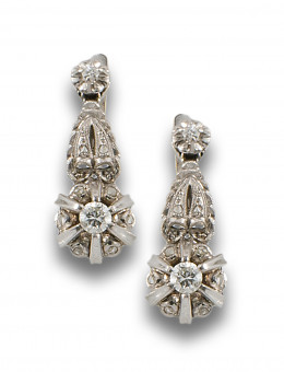 PENDIENTES COLGANTES, ESTILO ANTIGUO, DE DIAMANTES Y ORO BLANCO